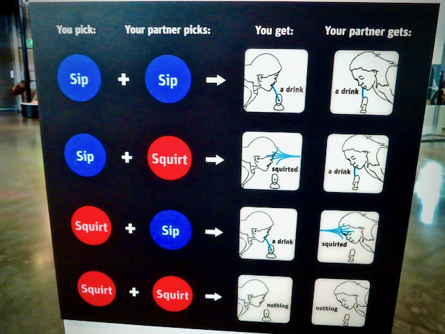 Users are guided through the experience with audio and physical prompts, building anticipation as they make their choices. Once both decisions are locked in, the outcome is revealed. To make things even more interesting, if both players betray each other and choose "Squirt," neither gets anything—except for a sad trombone sound effect, reinforcing their mutual loss.